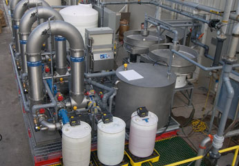 | Automated Controls - Every automated system that WRI manufactures comes equipped with a state-of-the-art control panel with the latest Allen Bradley PLC technology that offers user-friendly color touch screen programming, computer monitoring, and full reach-back capabilities to the corporate office. Whether wastewater streams are from gas wells, manufacturing plants, or cruise ships, WRI leads the industry in system automation technologies. At its manufacturing facility in Scottsdale, the Systems Automation Group builds control panels, installs wiring and electronic components, writes custom software, and prepares operating and training manuals for its clients. |